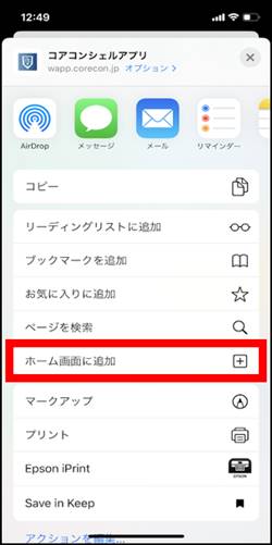 2.「ホーム画面に追加」を押す