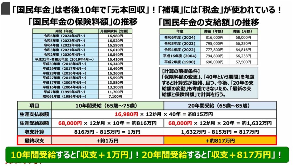 1.「国民年金」は老後10年で「元本回収」!「補填」には「税金」が使われている!