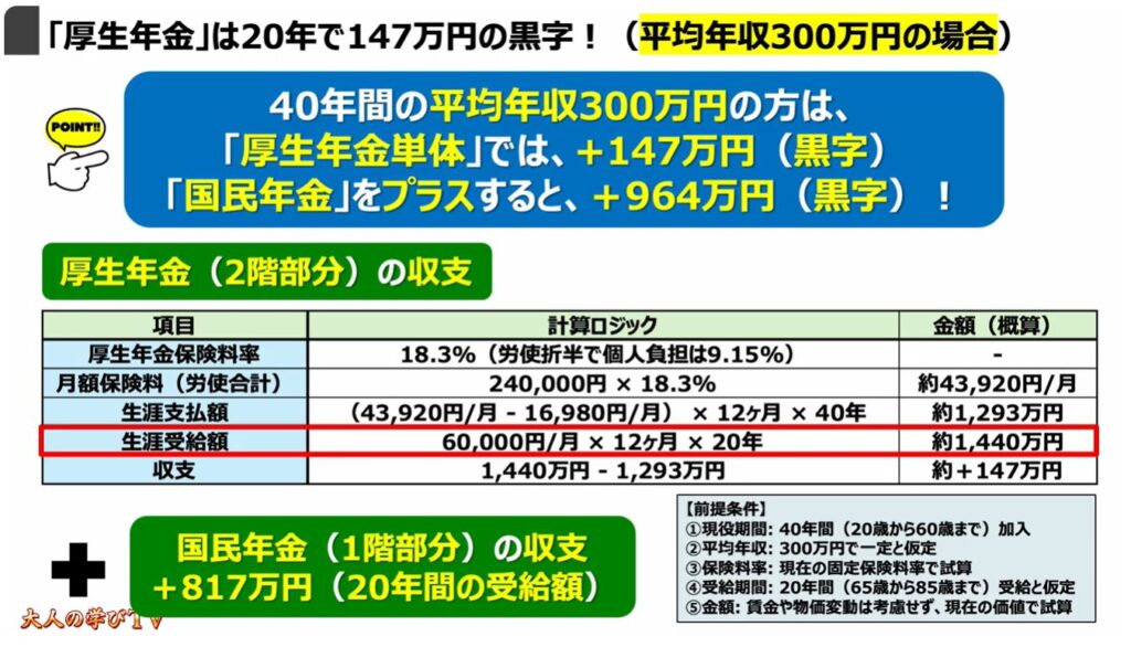 1.「厚生年金」は20年で147万円の黒字!(平均年収300万円の場合)