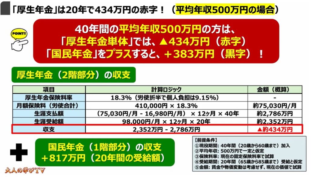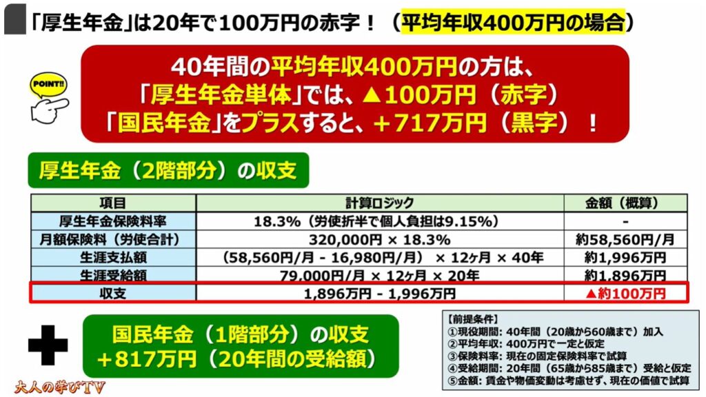 2.「厚生年金」は20年で100万円の赤字!(平均年収400万円の場合)