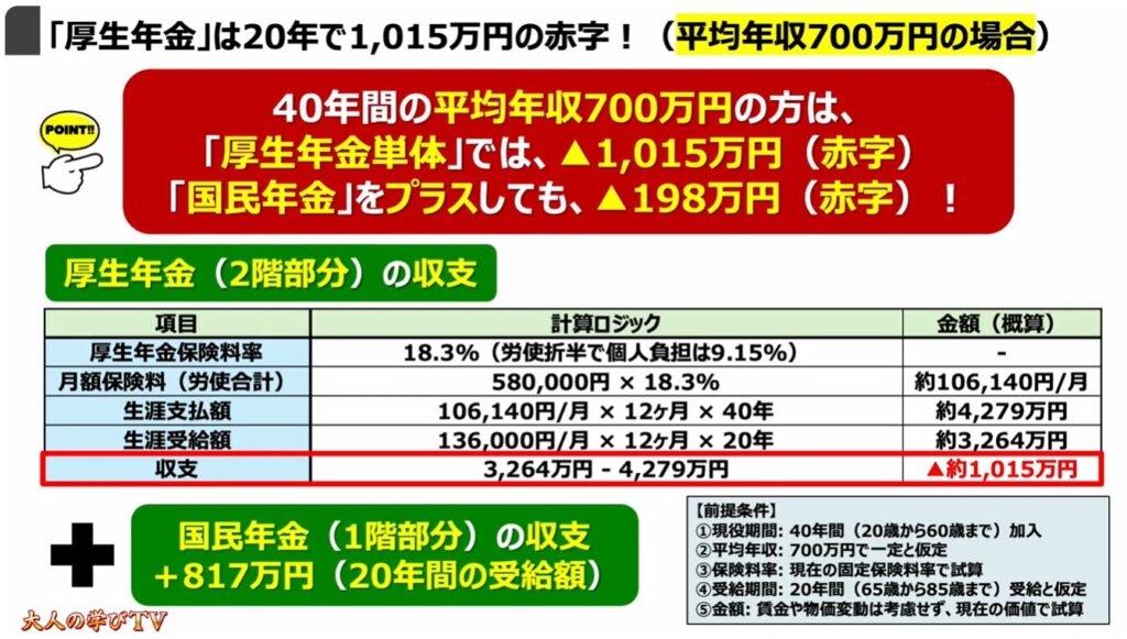 5.「厚生年金」は20年で1,015万円の赤字!(平均年収700万円の場合)