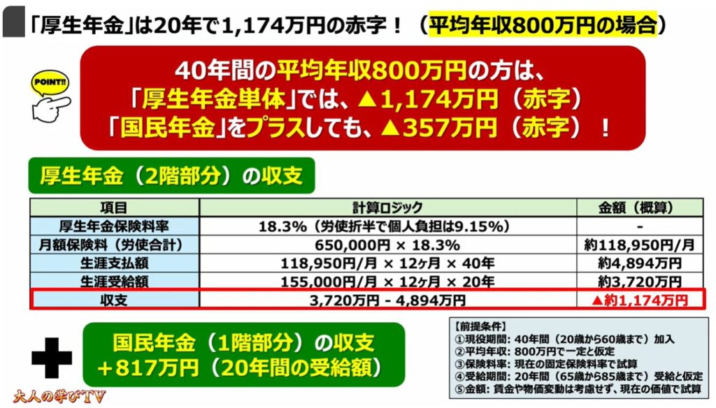 6.「厚生年金」は20年で1,174万円の赤字!(平均年収800万円の場合)
