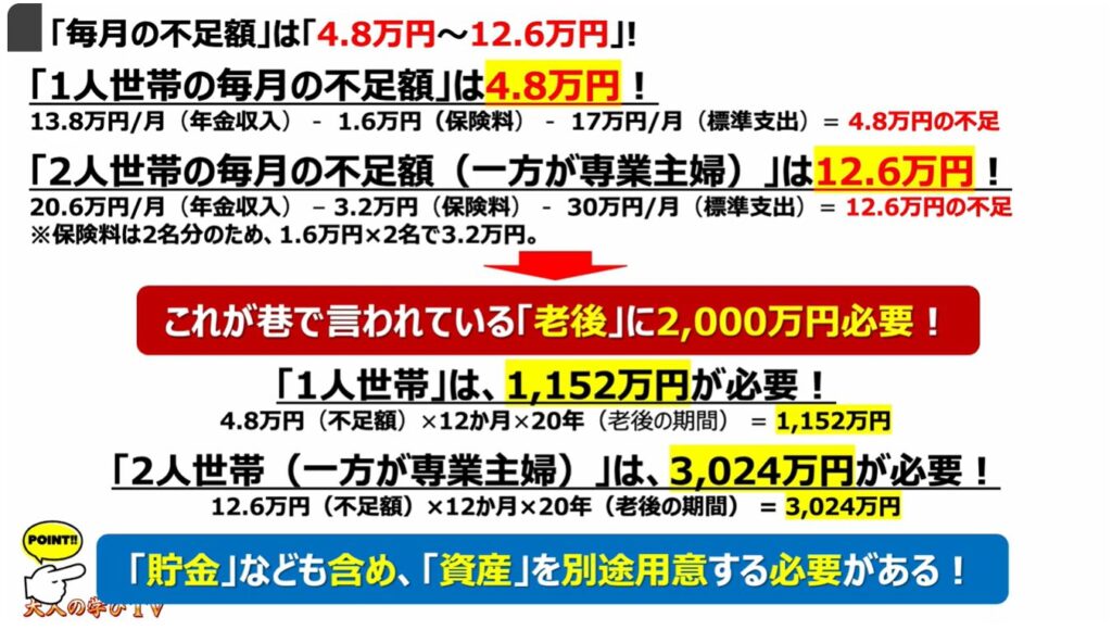 3.「毎月の不足額」は「4.8万円~12.6万円」!