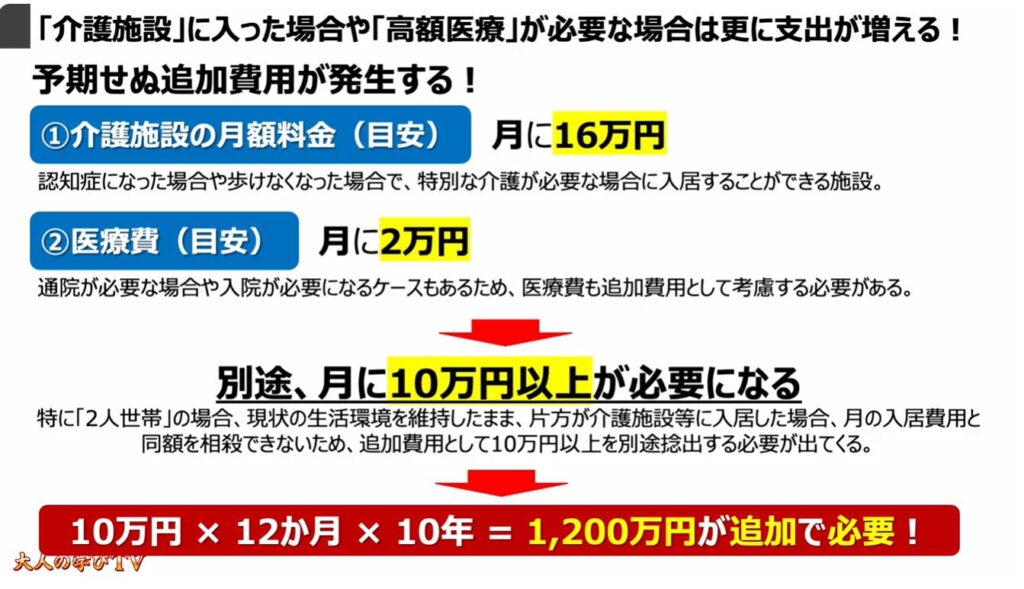 4.「介護施設」に入った場合や「高額医療」が必要な場合は更に支出が増える!