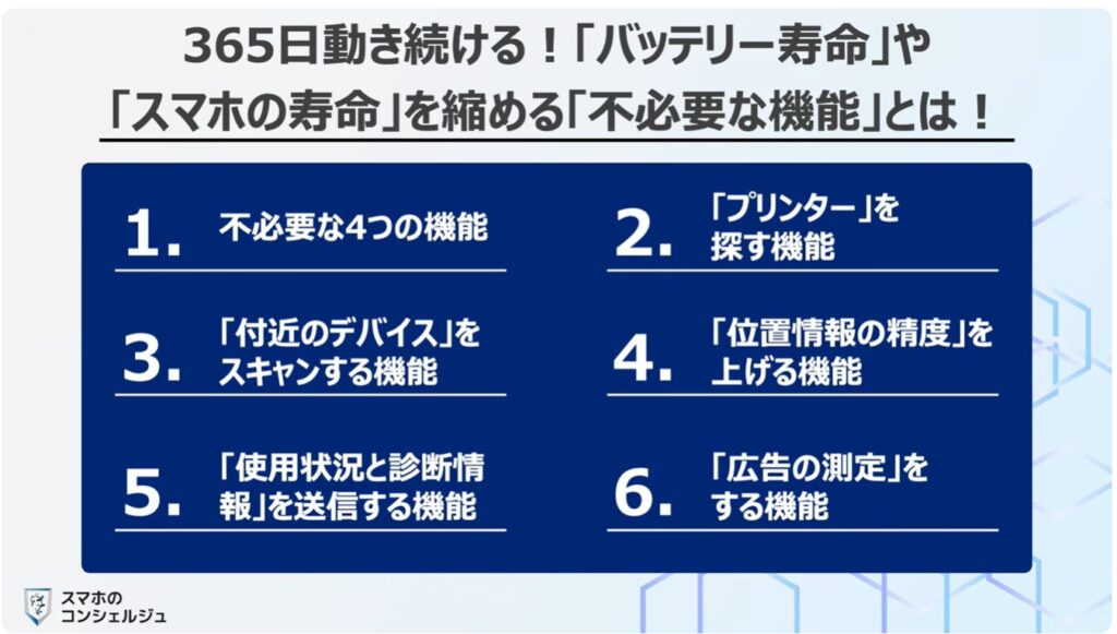 今回は、使わないのに365日動き続け、「バッテリー寿命」や「スマホの寿命」を縮める「不必要な機能」について解説していきます。