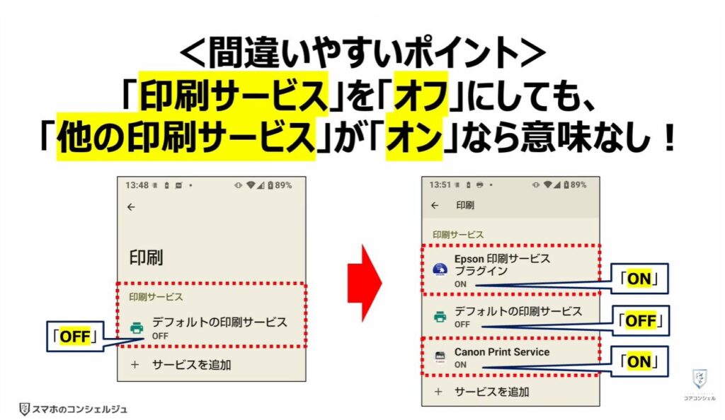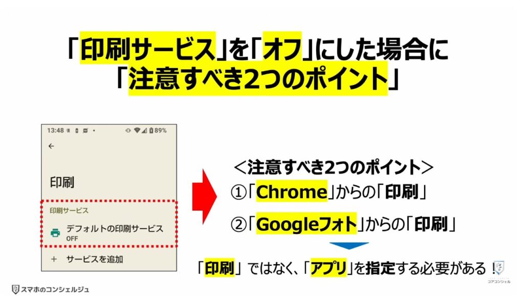 1.「印刷サービス」を「オフ」にした場合の2つの重要なポイント
