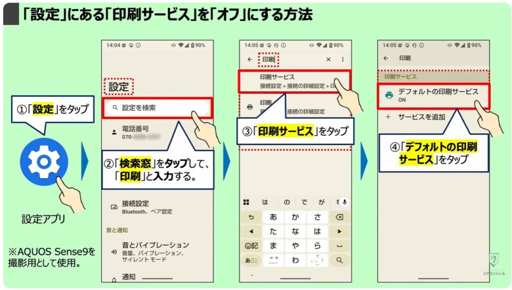 1. 「設定」にある「印刷サービス」を「オフ」にする方法