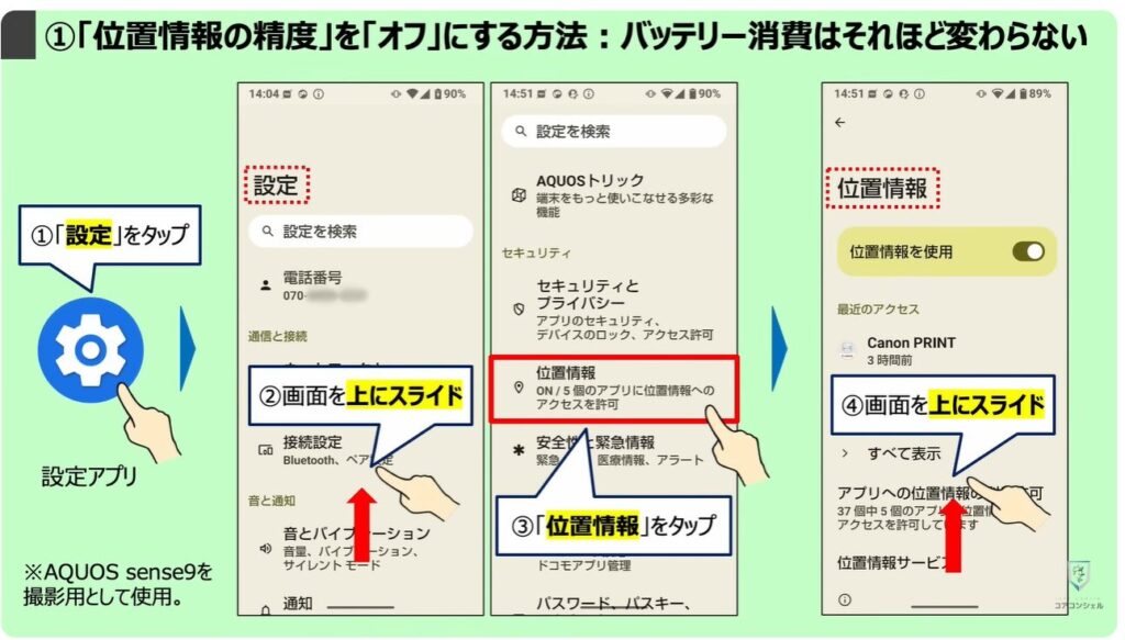 1. ①「位置情報の精度」を「オフ」にする方法:バッテリー消費はそれほど変わらない!
